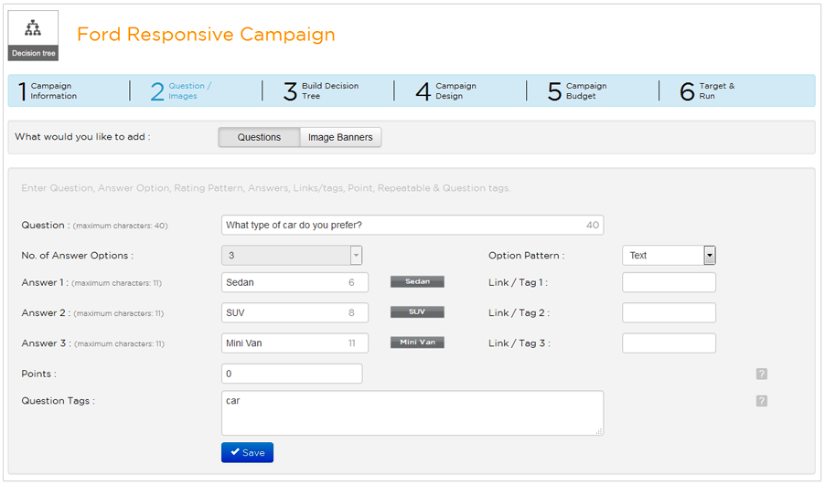 Link each option to it's corresponding banner ad. Be sure to add 40x40 logo image for your question along with a custom theme that suits your brand.