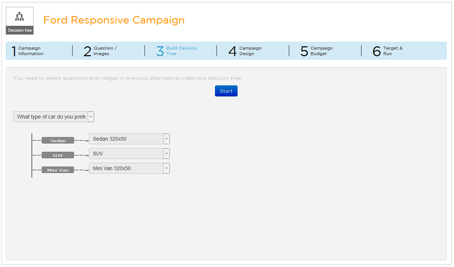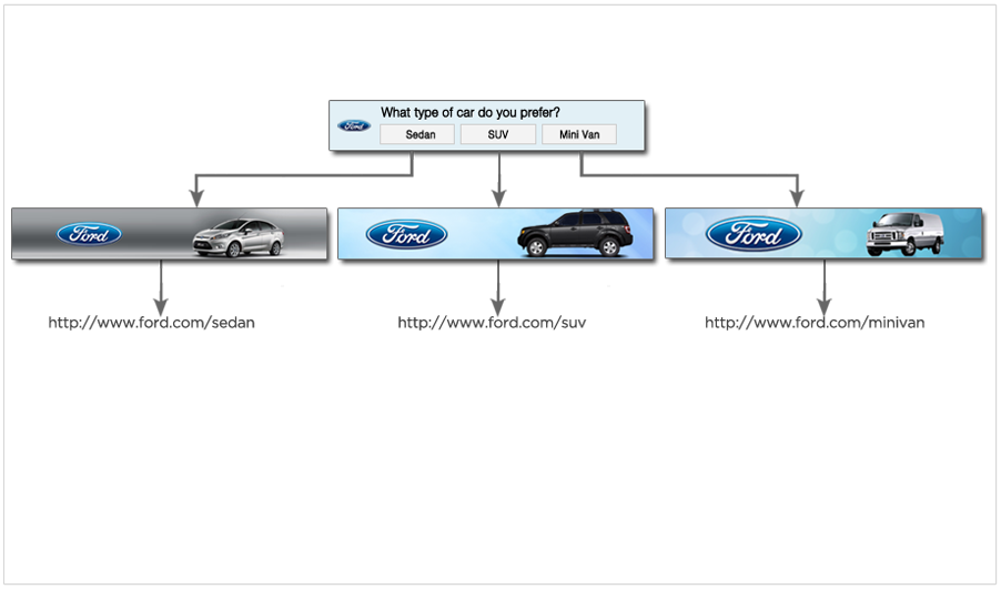Ask a compelling question with your product / service options. For each option upload attractive banners of size 320 x 50 with CFA link.
