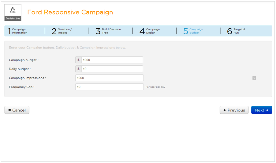 Control your costs by specifying overall and daily budgets along with daily frequency cap.